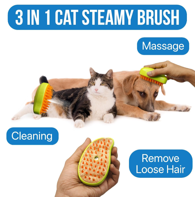 - Uplift your cat grooming routine with our steam cat brush. It eliminates tangled and matted fur while providing a gentle cleansing touch. It won't bother your cat, making it easy to use and clean. Cat brush steamer not only removes floating hair but also serves as a cleansing tool and a massager.