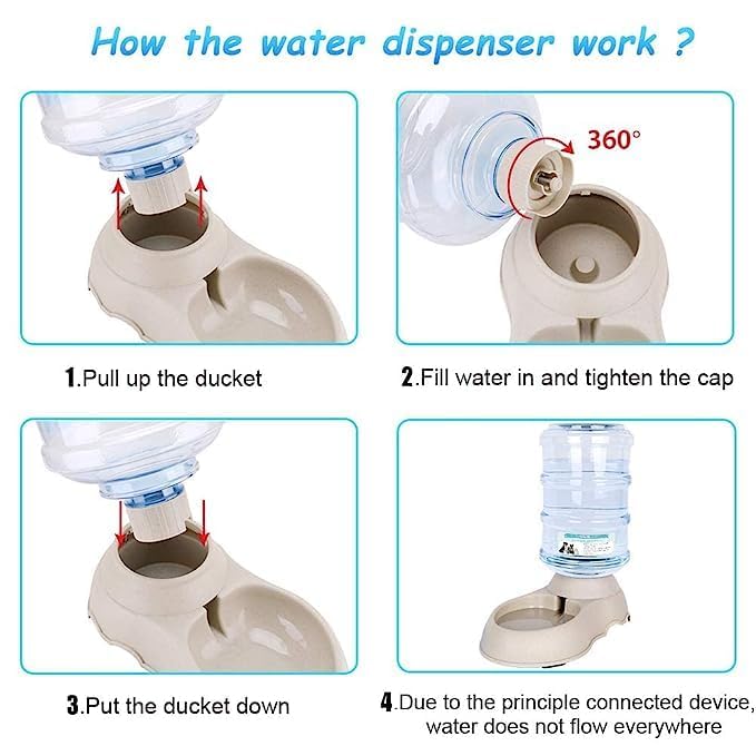 - Automatic Pet Feeding System: Auto Food Dispenser Designed with Durability in Mind, this Gravity Feeder Keeps Your Furry Friend happy and simplifies your life; And you can rest assured to go on vacation, work, party etc. Do not have to worry about pets will be thirsty.