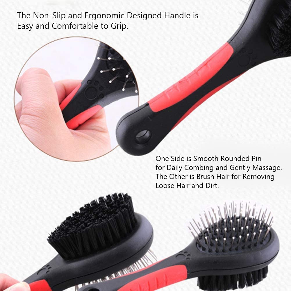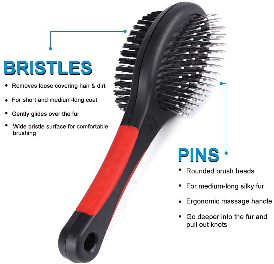 - One side has nylon bristles and one side has a pin brush to help groom your pet as needed. And our grooming brush is washable, which can be cleaned easily after use.