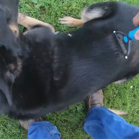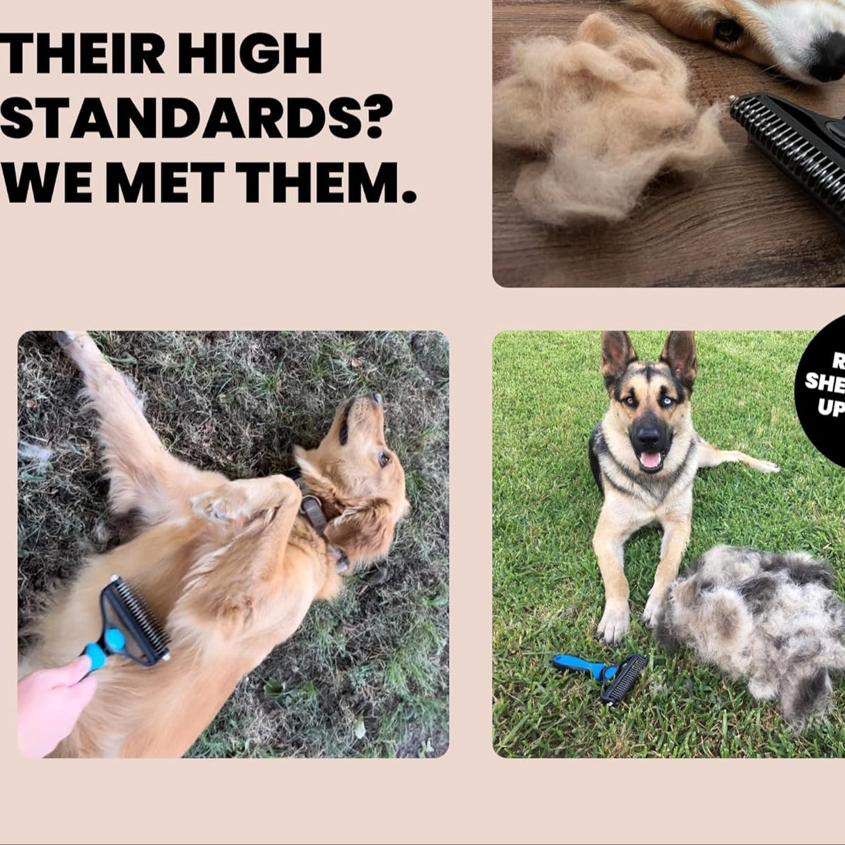 - The comb for dogs has a double head, starting with 22 teeth of an undercoat rake for cutting stubborn knots, mats and tangles without pulling, followed by 90 teeth shedding brush for thinning and Shedding. Professional pet grooming tool effectively reduces dead hair up to 95%.