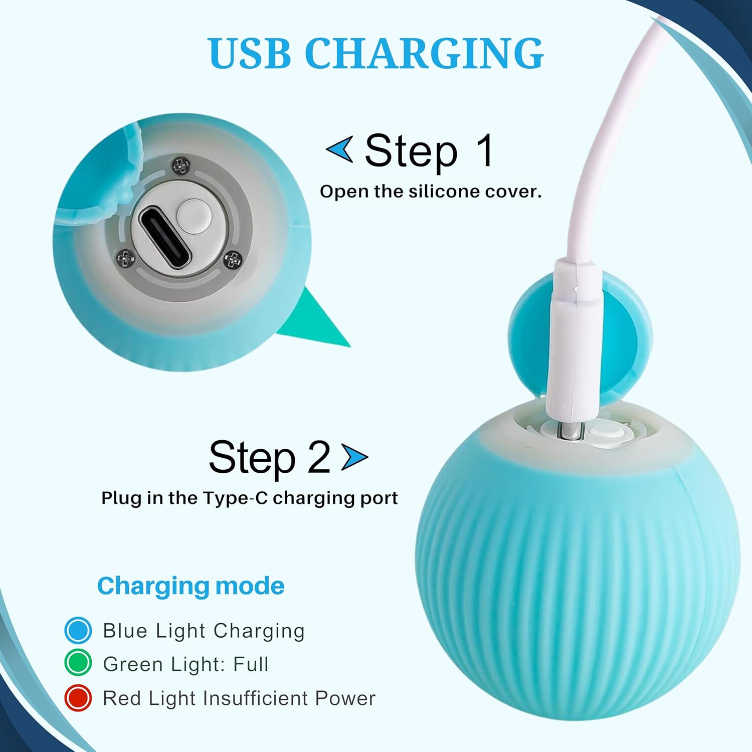 USB Charging: Get rid of annoying batteries and enjoy the fun of toy balls with a simple charge. Material Safety: High-quality ABS material; it will not break even if it hits the wall hundreds of times. Small size: 43 mm diameter is suitable for most cat paw control. Quiet Movement: Wrapped with 99% buffered silicone material to reduce the sound of collision with the ground and walls. Even timid cats can be attracted to rolling balls. Smart Obstacle Avoidance: Due to the sphere shape and self-balancing system, the ball will automatically change direction when colliding with walls, chairs, doors, etc. Power saving mode: The toy ball will enter the shutdown or standby state after running for 5 minutes. Effectively prevent cats from indulging in play.